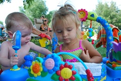 Parker and Paetyn playing with the exersaucer